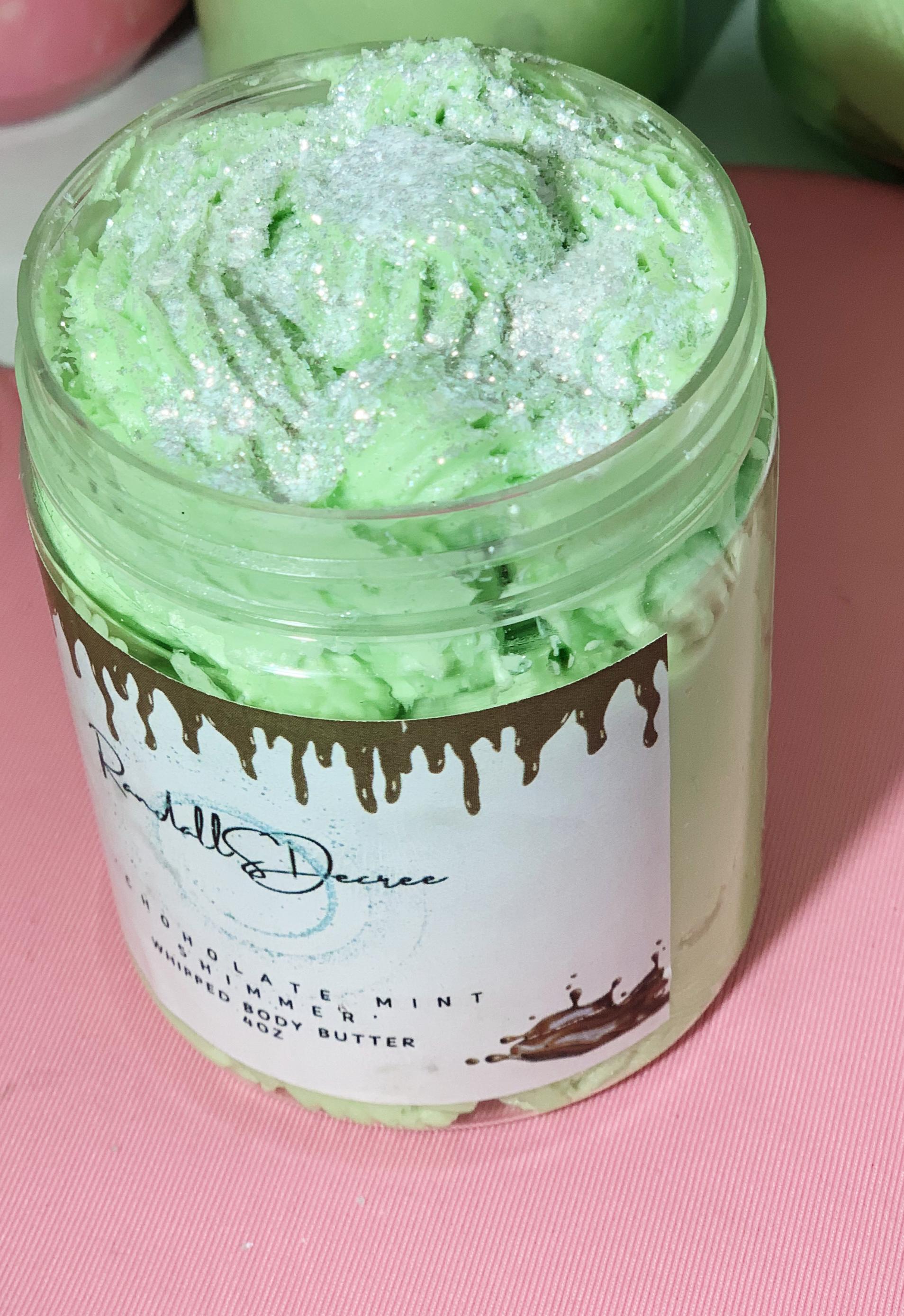 Experience the delightful fusion of rich cocoa and refreshing peppermint with our Chocolate Mint Whipped Body Butter. This luxurious whipped body butter is not only a moisturizer but also adds a subtle shimmer, leaving your skin glowing and radiant.